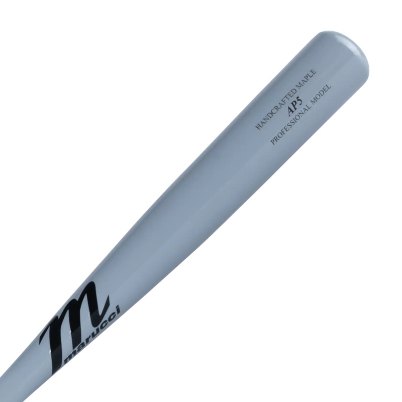 This AP5 maple model of Marucci bat is built with a thin handle, large barrel, and a flared knob resulting in an end-loaded bat commonly preferred by power hitters.