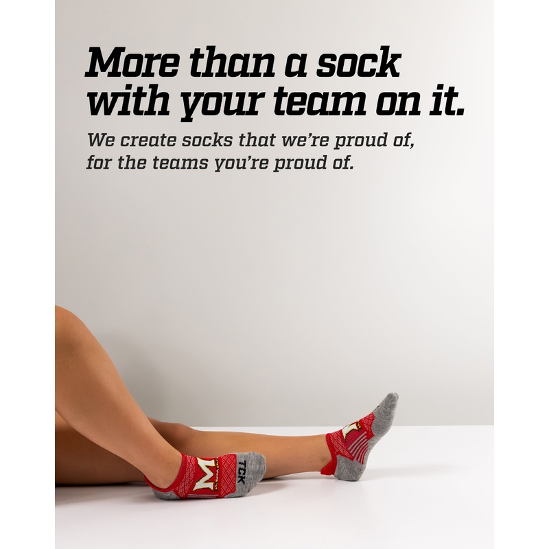 Step up your sock game with TCK’s Maryland Terrapins no show socks, high performance NCAA sock made in the USA. Designed for sneakerheads, golfers, runners, and fans alike, these socks feature a soft merino wool footbed, breathable mesh upper, arch support, and a smooth toe seam. The heel tab protects without showing. Perfect for all-day comfort, year-round wear, and gifting for birthdays, Father’s Day, grads, or Christmas.