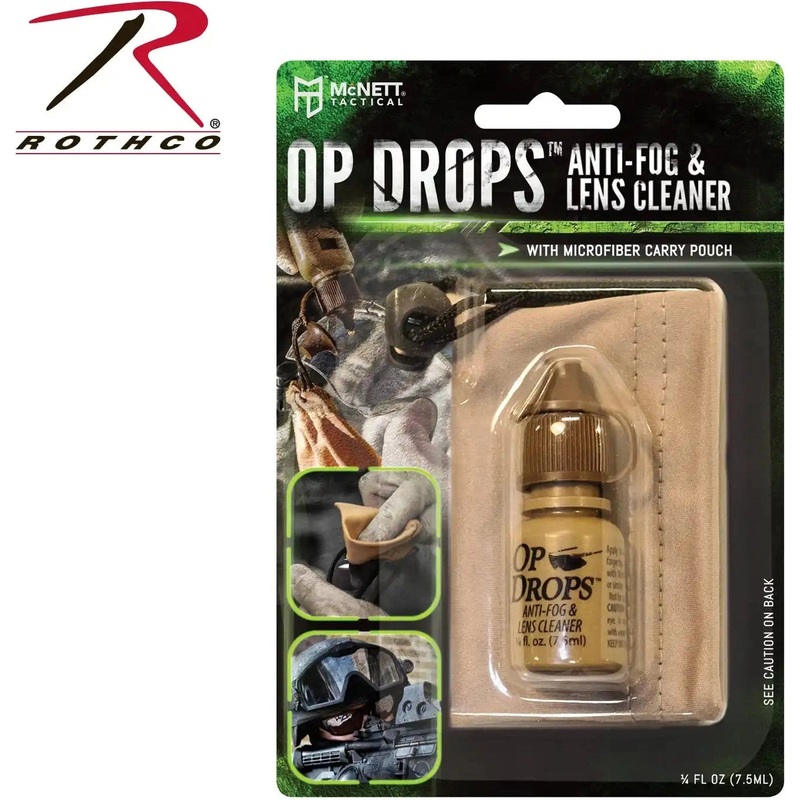 McNett Tactical OP Drops offer superior anti-fog protection and lens cleaning system to improve optical performances. These lens cleaning drops can be used on sunglasses, goggles, scopes, and much more! This lens cleaning system comes with a micronet microfiber cleaning cloth to aid in the lens cleaning process. Never lose the alcohol-free lens drops with a lint-free carry pouch that can be attached to the OP drop cap. McNett Tacticals lens cleaning kit provides a .25 oz bottle of the lens cleaning solution.