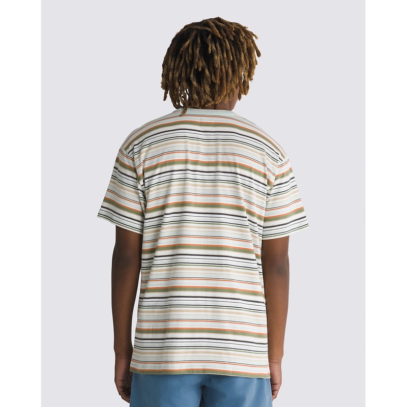 The Cullen Shirt is a short sleeve crewneck tee made from a heavier weight cotton and features yarn dyed striping and left chest pocket with clip label for visible branding.