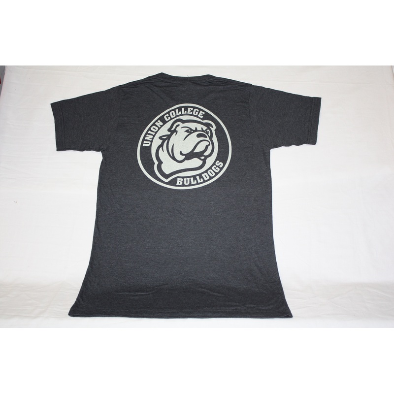 Men’s Graphite Tri-Blend Circle Bulldog Logo Tee. Small Circle Logo on Front, Large Logo on Back