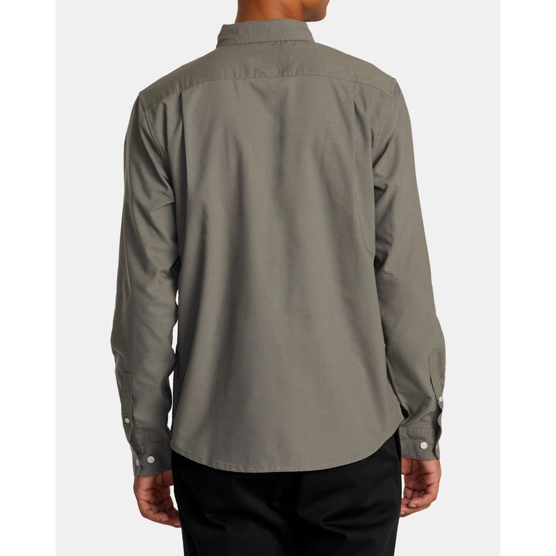 Branding: RVCA solo label at chest pocket hem