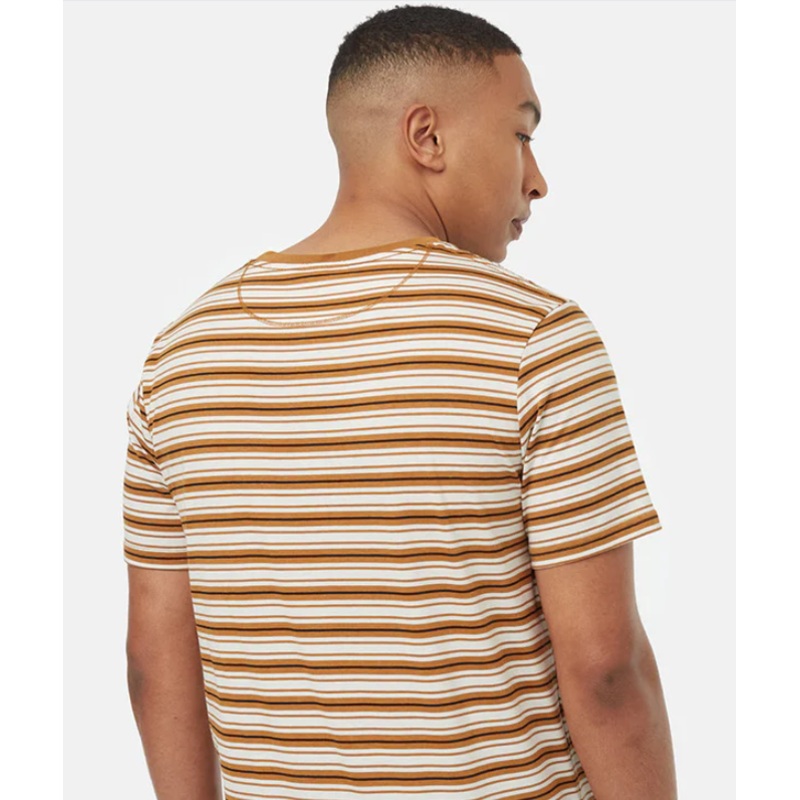 This three-tone striped shirt is made from a blend of recycled polyester, sustainably sourced TENCEL and organic cotton with a sustainable coconut button to tie it all together.