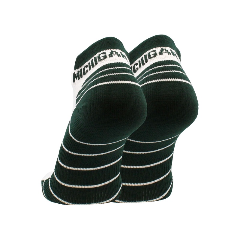 TCK college golf socks, low cut socks with tabbed heel. Heel tab socks ensure the socks don’t slip down. Get ready to cheer on your favorite team during the season! Wear these to the tailgate party, on the golf course, working out, or lounge around the house. Offering comfort, breathability, and durability these high quality Michigan State University Spartans socks are an ideal gift for birthdays, stocking stuffers or going back to school. Gear up for the big game! Let’s Go Sparty!
