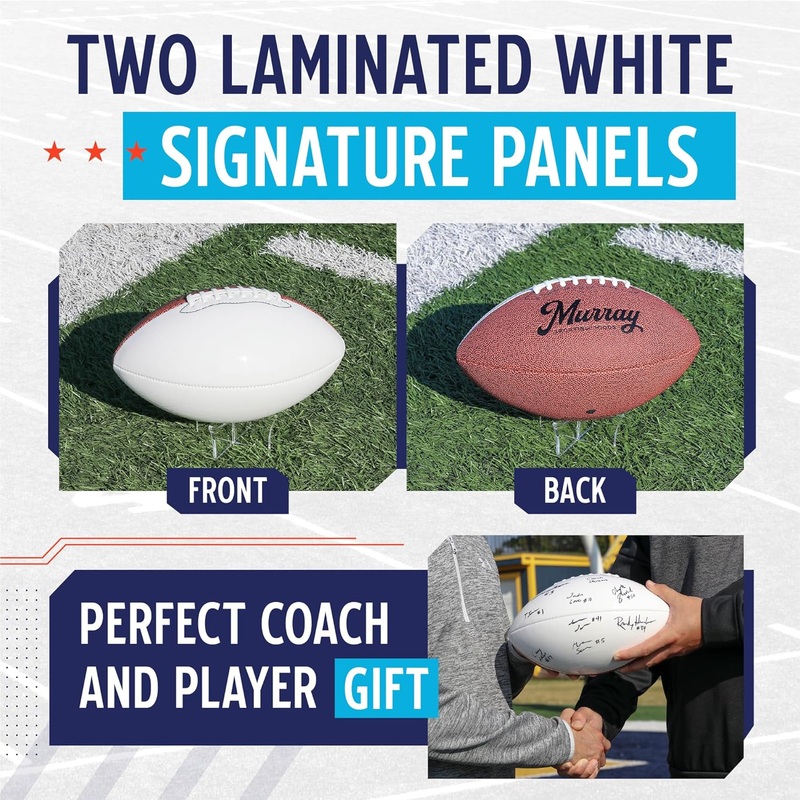 - TWO-COLOR PANELS: Half the football is white laminated synthetic leather that is easy to write on for autograph purposes, while the other half is brown synthetic leather that gives you that true authentic football feel.