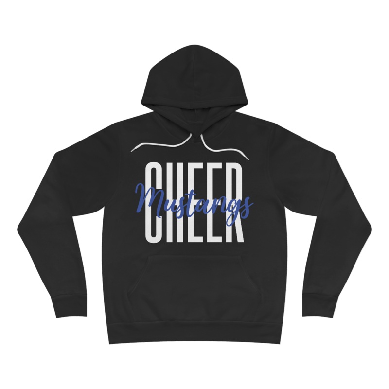 The unisex sponge fleece pullover hoodie is a blend of Airlume cotton and polyester. The percentages vary according to color. A pouch-style pocket spreads across the lower half of the garments front. The hood can be tightened with a white drawcord. Both cuffs and waistband have ribbing for extra grip.