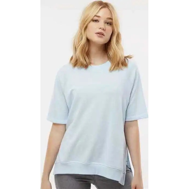 MV Sport W23711 Women’s French Terry Short Sleeve Crewneck Pullover – Arctic Blue