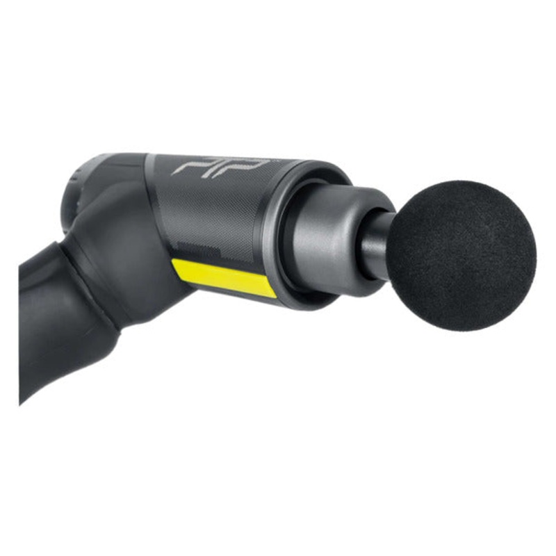 The PTP Myo XV ultra-quiet percussive massage device includes 6 different easy-to-clean massage heads to target different muscle groups.