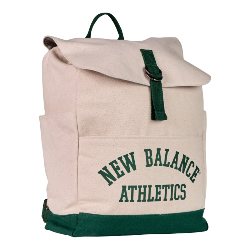 This New Balance Canvas Backpack is perfect for staying organized at work, school, or while on the go. Made of durable cotton, it features comfortable shoulder straps with cotton webbing and a hidden back pocket for secure storage. The top flap has drawstring and button closures, while metal hardware and printed branding add stylish details.