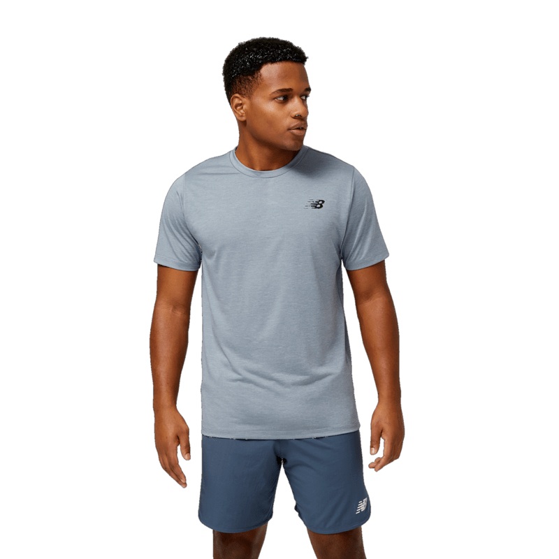 Featuring a sleek athletic fit, the New Balance Tenacity T-Shirt is ideal for ambitious workouts at the gym and beyond. The workout tee is crafted from a soft stretch knit fabric for mobility and all-day comfort. NB DRY moisture-wicking technology helps to keep you cool and dry as you power through each rep or lap. The crew neck performance tee is finished with an eye-catching logo print.