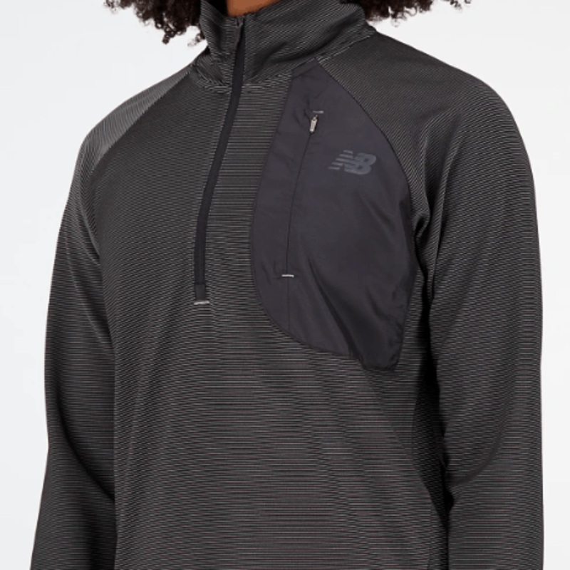 The New Balance Elite Q Speed Shift 1/2 Zip was designed with both style and functionality in mind to deliver a versatile performance piece you can wear anywhere. This long sleeve shirt features textured fabric with NB HEAT to help you feel warm while wicking away moisture, and back venting for extra breathability when your workout heats up. The relaxed fit offers comfort and a contemporary silhouette for added style.