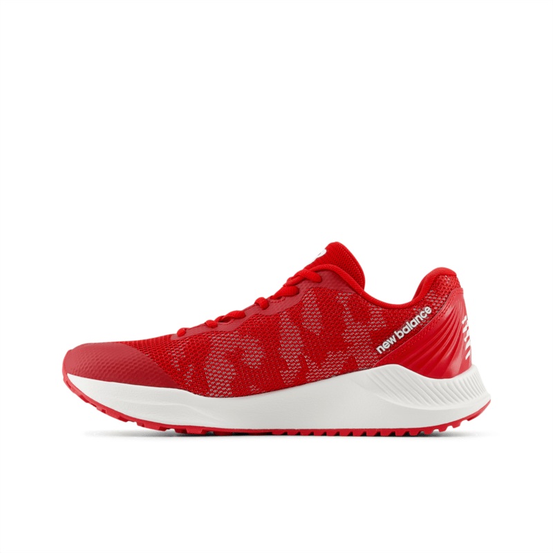 Equipped with an aggressive rubber turf sole for reliable traction on and off the field, the New Balance FuelCell V7 Youth Turf-Trainer is a winning addition to any future baseball stars gear. The kids baseball shoe has a sturdy synthetic upper, in uniform-inspired colors that will look right at home out on the diamond. An adjustable lace closure helps to give the kids shoe a comfortable and secure fit.