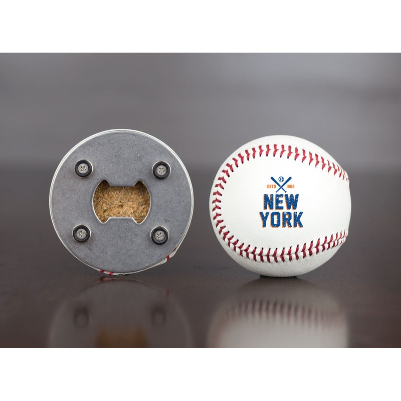 We combined baseball and drinking beer, two of American’s greatest traditions, to come up with the BaseballOpener, a bottle opener made from half of a REAL Leather Baseball. This particular listing features one of our New York Baseball designs printed onto the ball with a UV cured ink. If you’d like to see what other designs we have available click here, if you would like to customize your own BaseballOpenerthen click here.