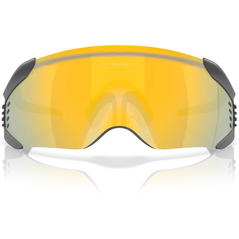 Built at the crossroads of aesthetic disruption and boundary-pushing performance, Velo Kato resists the conventional with a lens design enabled by PhysioMorphic Geometry for a close fit to the face. The large lens shape, Unobtainium ligature nosepad, no-slip Unobtainium earsocks and flow conditioner tabs on the frame create a sleek, aerodynamic no-hinge system that maximizes protection, airflow and field of view to keep you locked in at all times. For the complete ride, Velo Kato integrates seamlessly with the Oakley Aero helmet. To experience enhanced color and contrast everywhere you go, Prizm Lens Technology provides the details. – DISRUPTIVE DESIGN: Advancements in optical design and a design methodology called PhysioMorphic Geometry have enabled a progressive, disruptive design and intended to fit the lens as close to the face as possible, providing optimized coverage, wider field of view, frame retention and impact protection.
