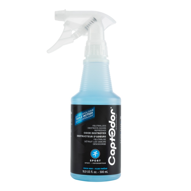 CAPTODOR SPORTS GEAR is a TRIPLE ACTION biotechnological product developed specifically to destroy odors impregnated in sports gear. It fights odors at the source and its pleasant perfume provides an instant freshness.