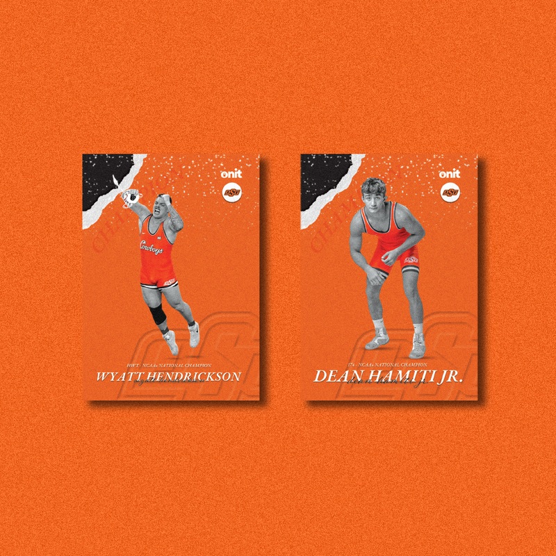 SPECIAL OFFER: Every purchase of an Oklahoma State wrestling platinum box will come with a guaranteed Individual National Champion insert card! Celebrate the accomplishments of Wyatt Hendrickson and Dean Hamiti Jr. with these commemorative cards. Only 250 of these special-edition cards were produced for each athlete.