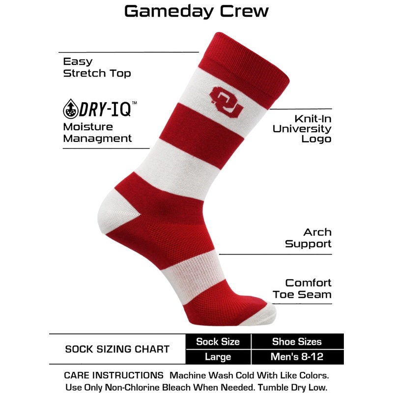 - COMFORT AND BREATHABILITY: These premium quality Oklahoma Sooners striped dress socks provide soft comfort. Moisture management technology pulls moisture and sweat away from skin.