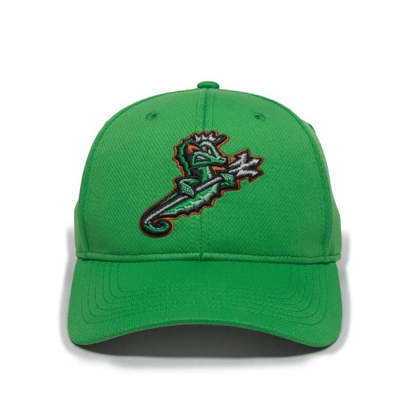 Outdoor Cap’s MiLB Adjustable Performance cap is a great cap for adults and kids. The MIN-350 is a structured cap made out of a polyester fabric with a hook and loop tape closure. This cap also features a wicking sweatband, an anti-glare under visor, and a mid to low crown shape.