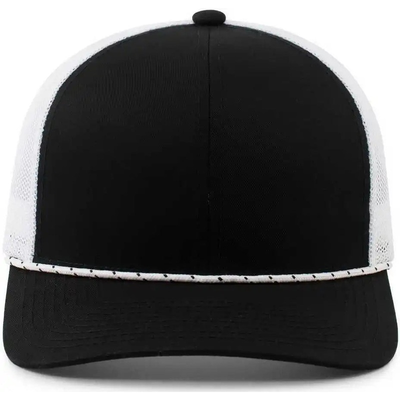 Pacific Headwear 104BR Trucker Snapback Braid Cap – Black White Black