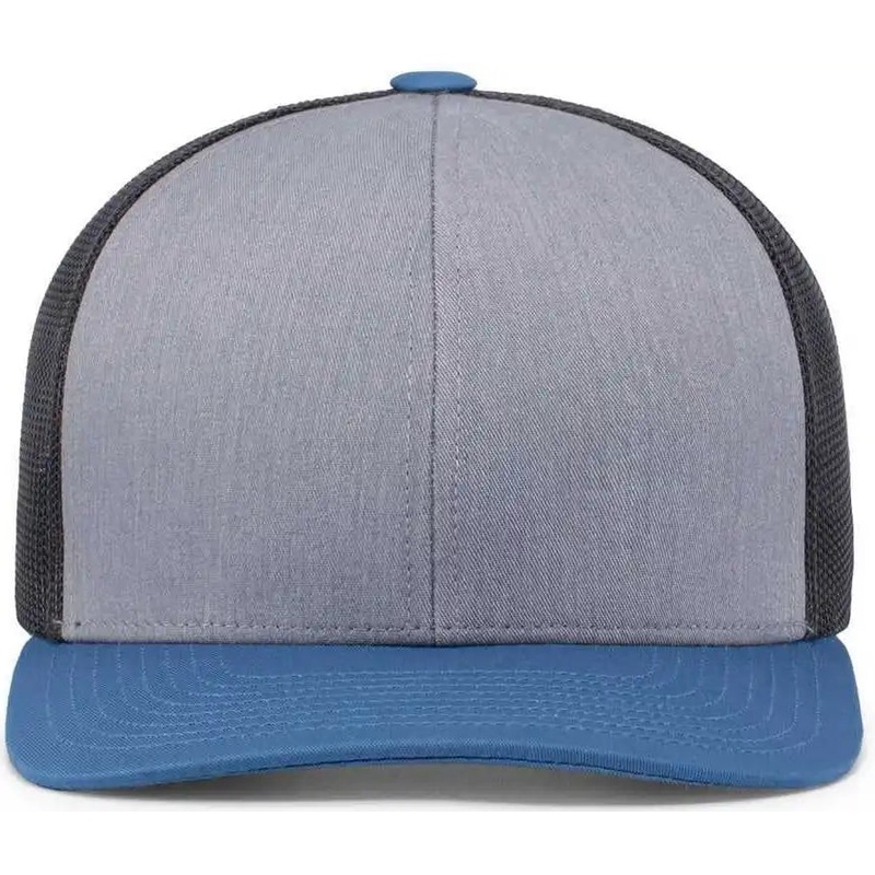 Pacific Headwear 104C Trucker Snapback Cap – Heather Grey Lt Charcoal Ocean Blue>
