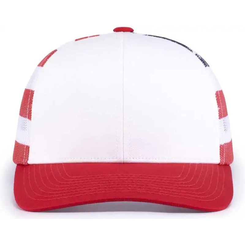 Pacific Headwear 104P PRINTED TRUCKER CAP – White Usa Red>