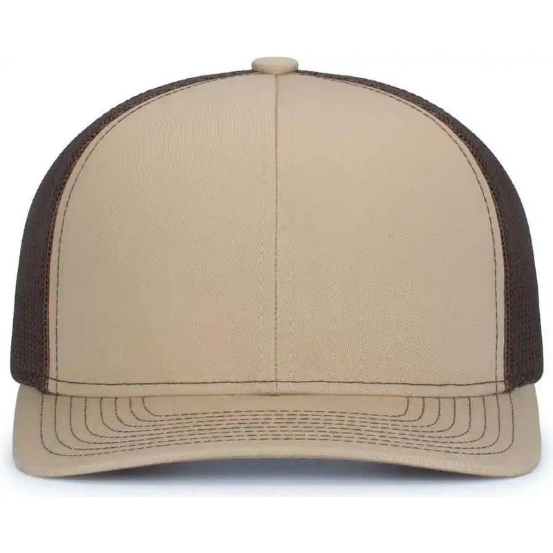 Pacific Headwear 104S Contrast Stitch Trucker Snapback – Khaki Brown Khaki