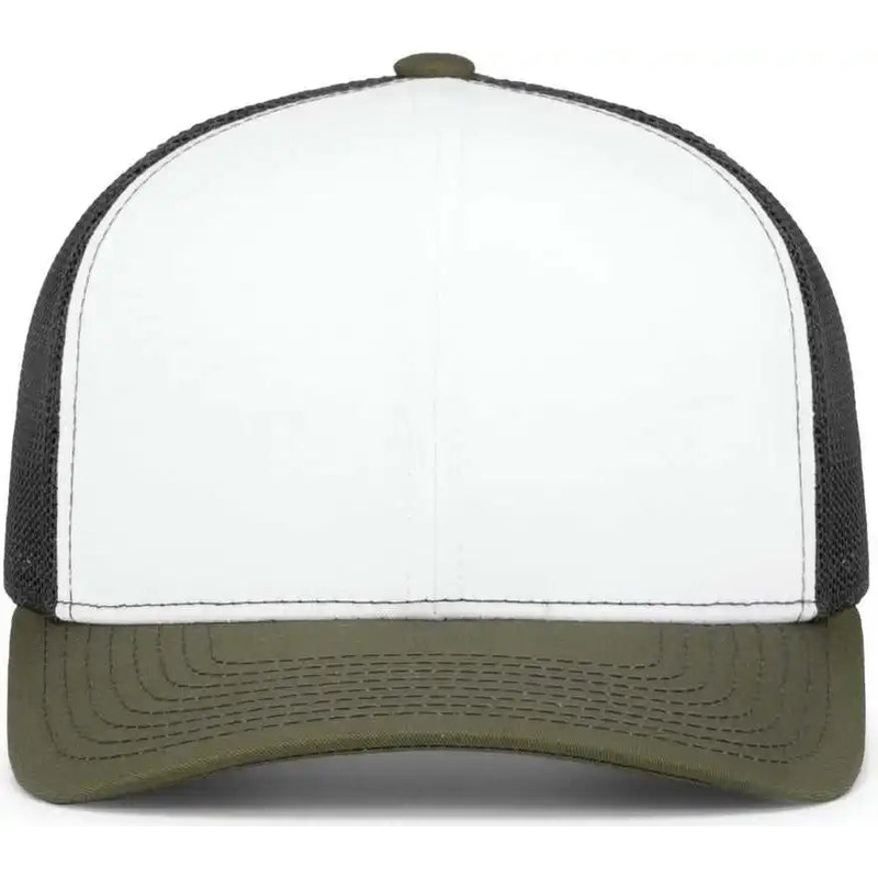 Pacific Headwear 104S Contrast Stitch Trucker Snapback – White Light Charcoal Moss