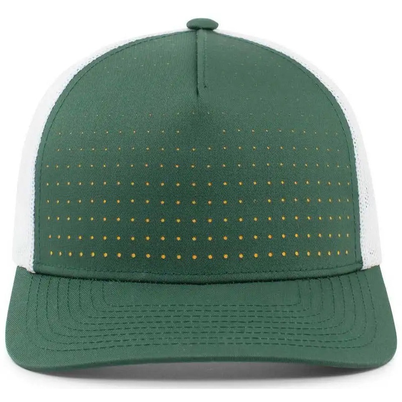 Pacific Headwear 105P Perforated 5 Panel Trucker Snapback Cap – Dark Green White Gold