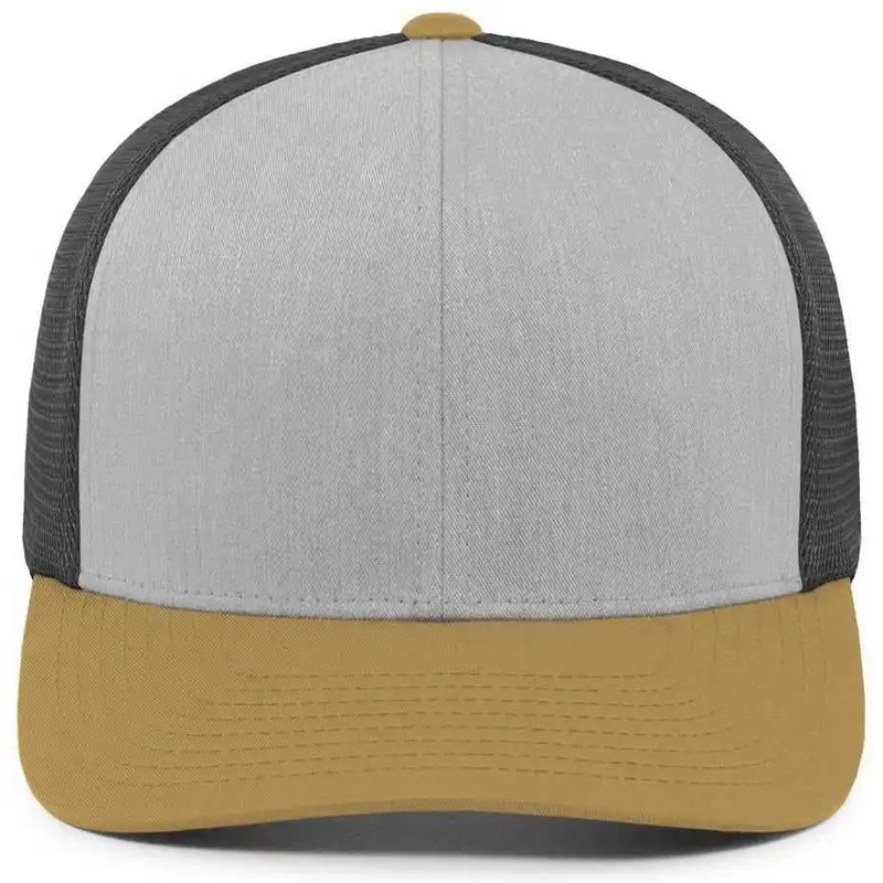Pacific Headwear 110F Trucker Flexfit Snapback Cap – Heather Grey Lt Charcoal Amber Gold