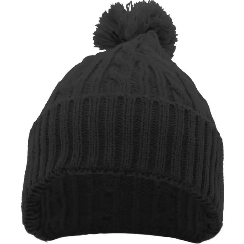 Pacific Headwear 643K Cable Knit Pom-Pom Beanie – Black>