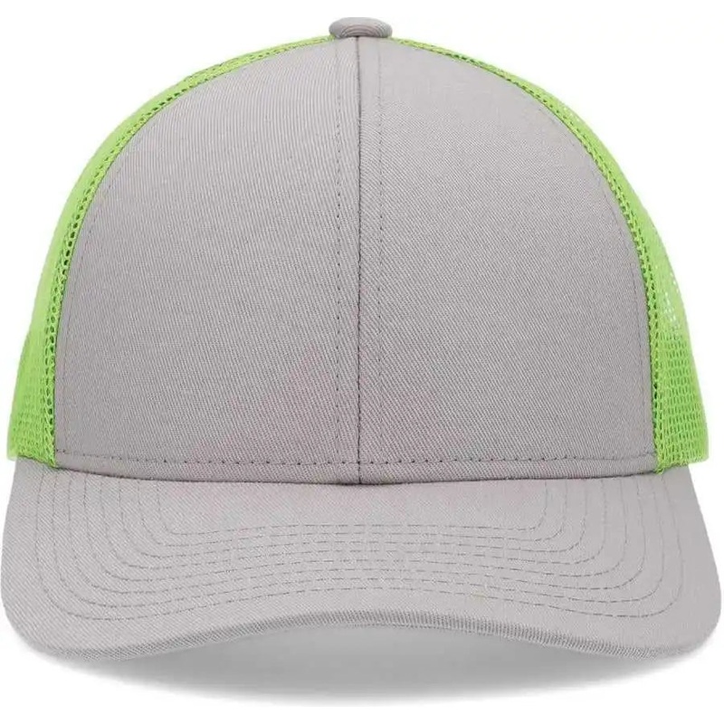 Pacific Headwear P114 Low-Pro Trucker Cap – Heather Grey Neon Green Heather Grey