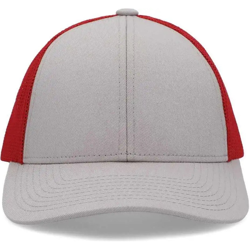 Pacific Headwear P114 Low-Pro Trucker Cap – Heather Grey Red Heather Grey