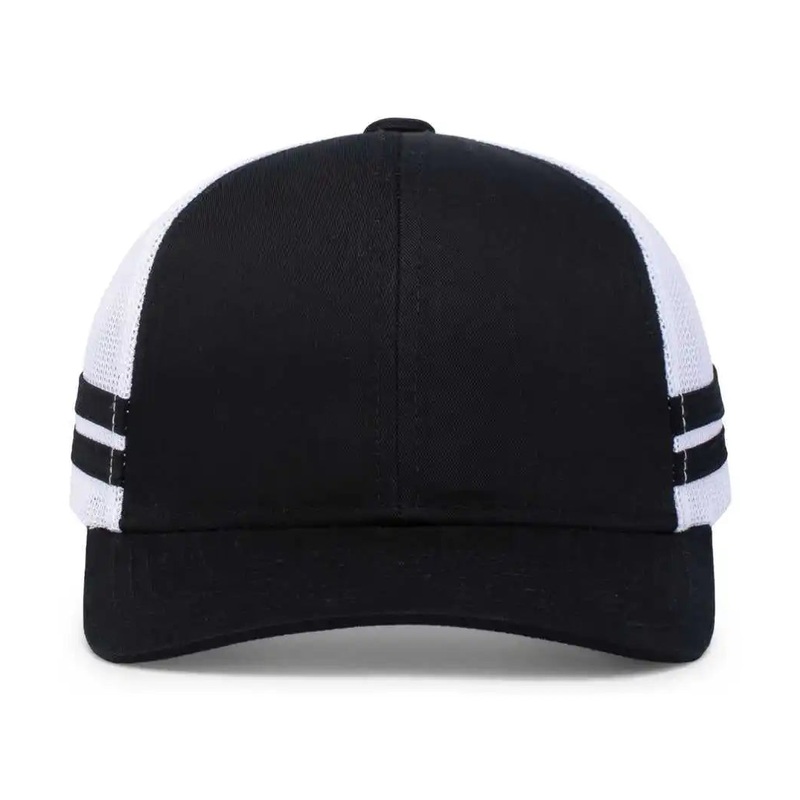 Pacific Headwear P115 Low-Profile Stripe Trucker Cap – Black White Black>