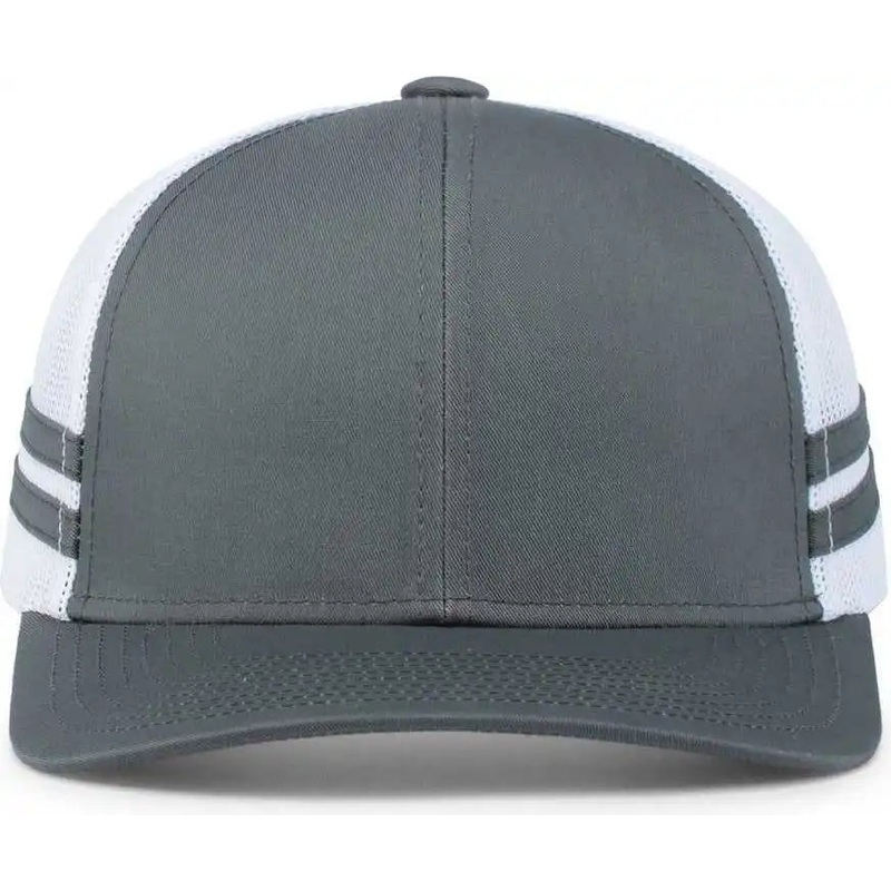 Pacific Headwear P115 Low-Profile Stripe Trucker Cap – Graphite White Graphite>