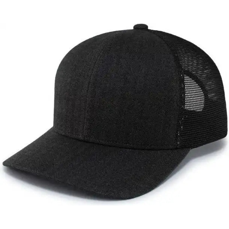Elevate your style with the Herringbone Trucker Cap from Pacific Headwear Headwear. Designed with on-trend herringbone fabric front panels and visor, this adjustable snapback trucker cap stands out from the rest and is a stylish option for your brand, business, or event.
