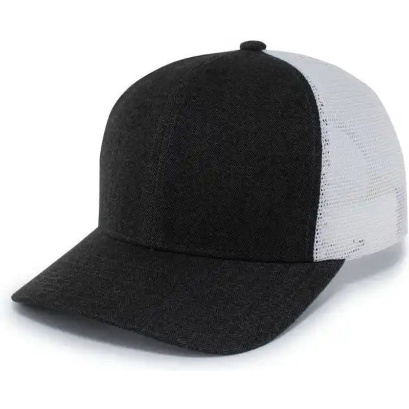 Elevate your style with the Herringbone Trucker Cap from Pacific Headwear Headwear. Designed with on-trend herringbone fabric front panels and visor, this adjustable snapback trucker cap stands out from the rest and is a stylish option for your brand, business, or event.