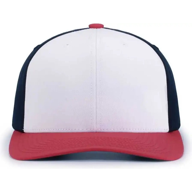 Pacific Headwear P322 POLY/COTTON SNAPBACK CAP – White Navy Red>
