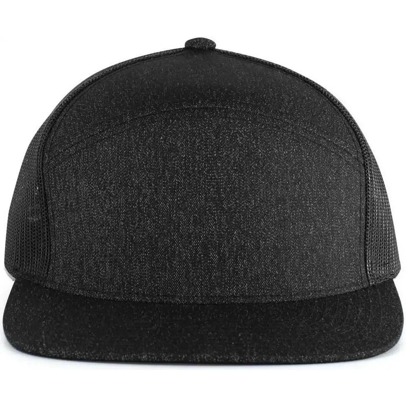 Pacific Headwear P710 Heather 6-Panel Arch Trucker Snapback Cap – Black Heather Black>