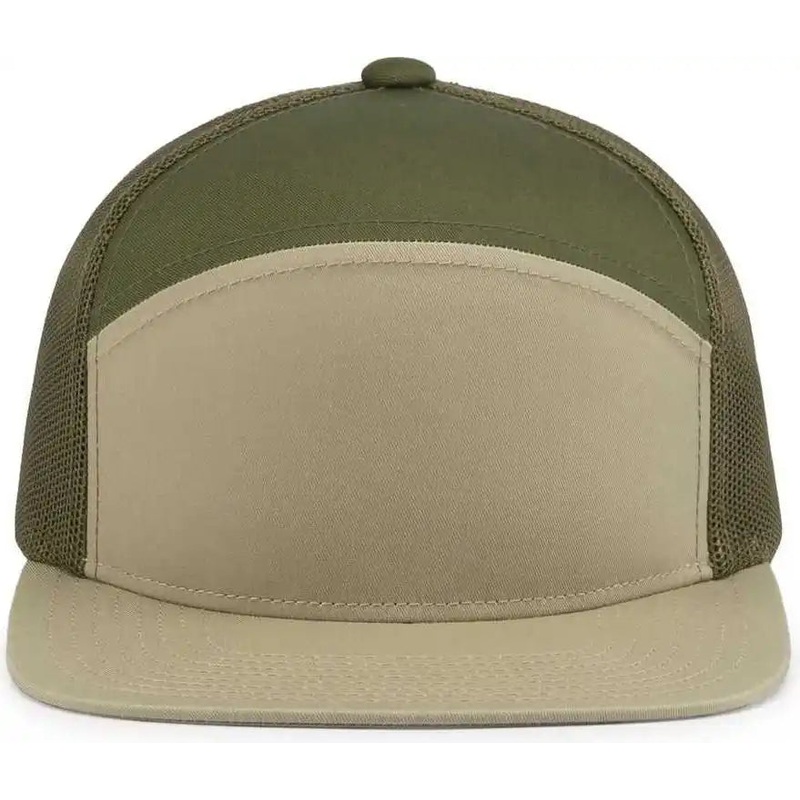 Pacific Headwear P787 6-Panel Arch Trucker Snapback Cap – Khaki Moss Khaki>