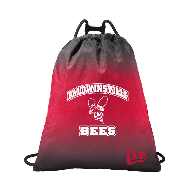 Red New Era Cinch Bags with the Palmer and B’ville logos.