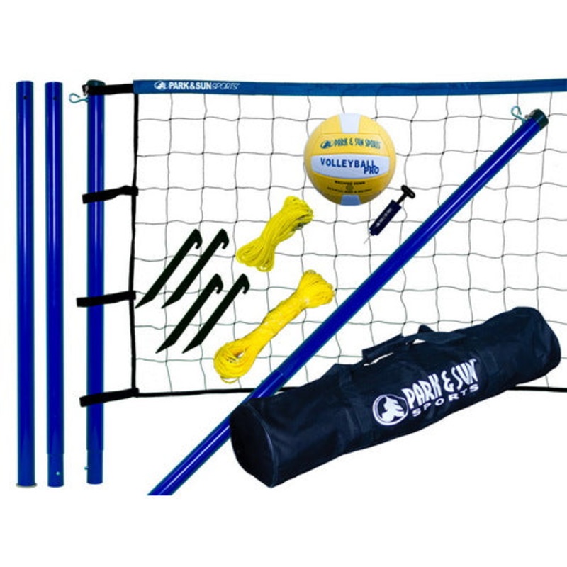The Spiker Sport level volleyball net system is designed for recreational players and families. It features durable steel poles and a full standard length 32′ volleyball net system. This net features the Momentum Net which evenly distributes tension throughout the body of the net. This provides maximum ball out of net play, which sets our sets apart from the competition.