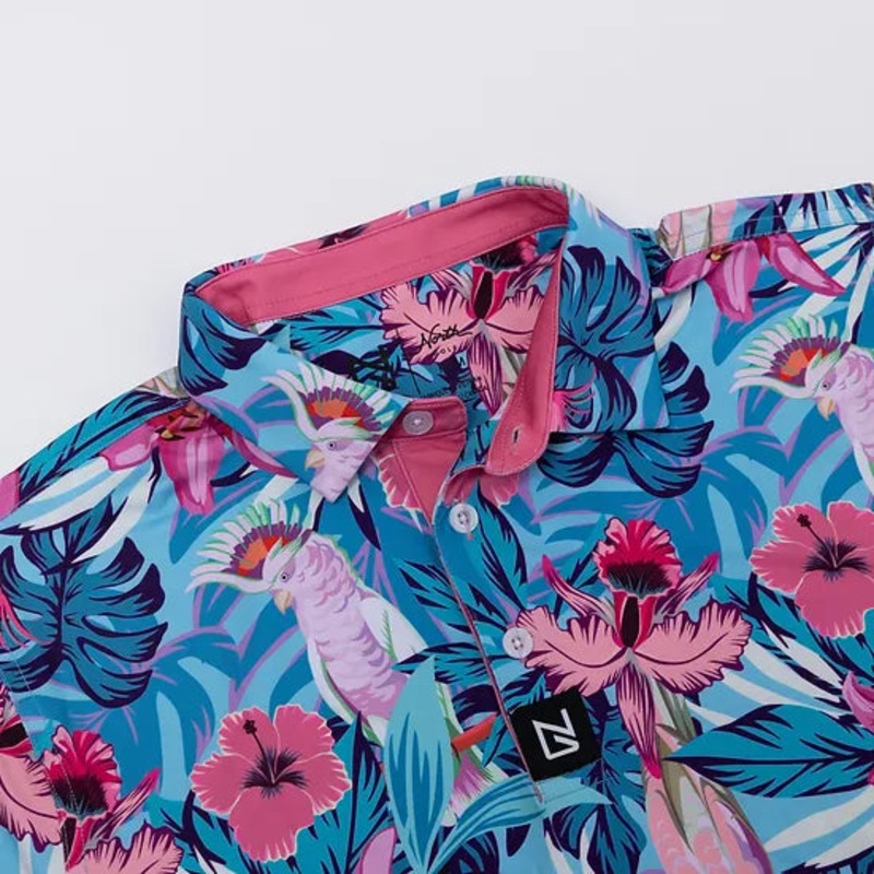 Introducing the ‘Tropical Tweets’ polo shirt where classic meets exotic! Navigate the urban jungle in style with a splash of vibrant colors and parrot-perfect prints. This shirt isn’t just for polo it’s for those who prefer their fashion as lively as a jungle symphony. Embrace the wild side of casual, because why blend in when you were born to stand out? #FashionFlock