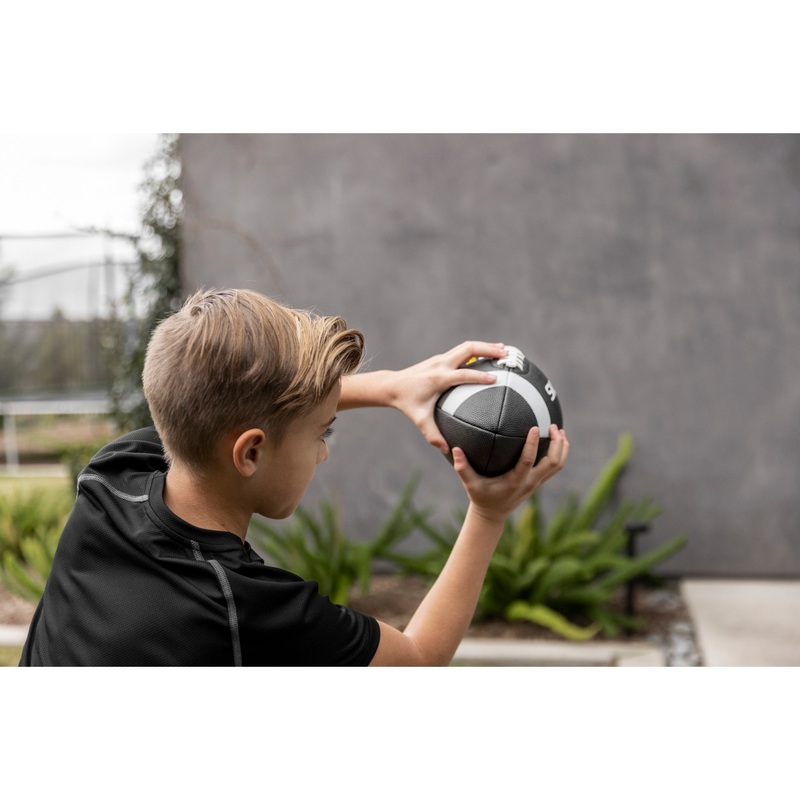 The SKLZ Pass-N-Catch helps athletes get in the reps they need. Designed with one flat end, this football rebounds, allowing you to practice your technique without a partner or net. Work on hand-eye coordination, reaction time, and general form as the ball spirals back to you. Whether you are a receiver looking to make more catches or a quarterback working on the perfect pass, this ball does it all. Not only can you work on your passing and receiving skills through repetition training, but you can also build the arm strength needed for your best game-day plays. Train for a well-rounded game and gain an edge over the competition. Built with durable materials intended to last through seasons of use. Best suited for kids ages 8 to 13.