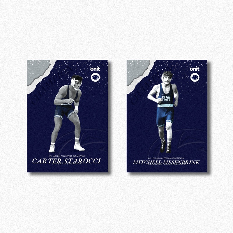 - Penn State’s two individual national champions – Carter Starocci and Mitchell Mesenbrink – also have an additional card in the set to celebrate their achievements. A numbered variant of the Staroccia and Mesenbrink cards will be randomly inserted into select boxes.