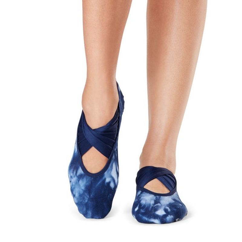 Penny Grip Socks add a fun flair with twisted straps across the foot for a one-of-a-kind look. Her low profile hugs the foot just below the ankle while Tavis stellar grip pattern safely moves you through your barre, Pilates and yoga classes. Express the heart of Tavi with Function that Flows into Fashion. Technical Features: