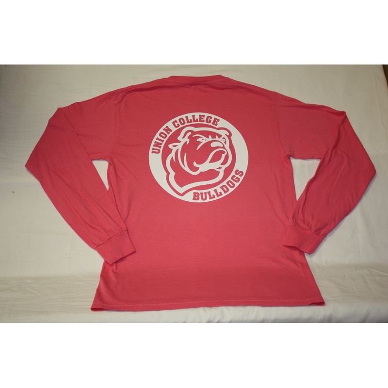 Peony Union College Circle Logo 100% CottonLong Sleeve Shirt. Small Circle on Front Right, Large Circle Center Back.