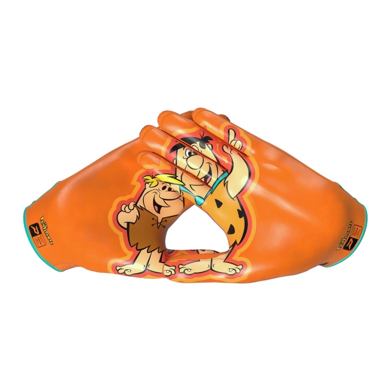 Introducing the ultimate fusion of style and performance: Phenom Elite x ‘Bedrock Blitz’ Flintstones VPS5 Football Gloves. Step onto the gridiron with the swagger of Fred and Barney, iconic characters from the beloved Flintstones series, adorning your palms in vibrant detail. Crafted for champions, these gloves boast a striking orange cheetah print design, exuding speed and agility with every movement. Whether you’re catching passes or making tackles, the superior grip provided by these gloves ensures unparalleled control and confidence on the field.