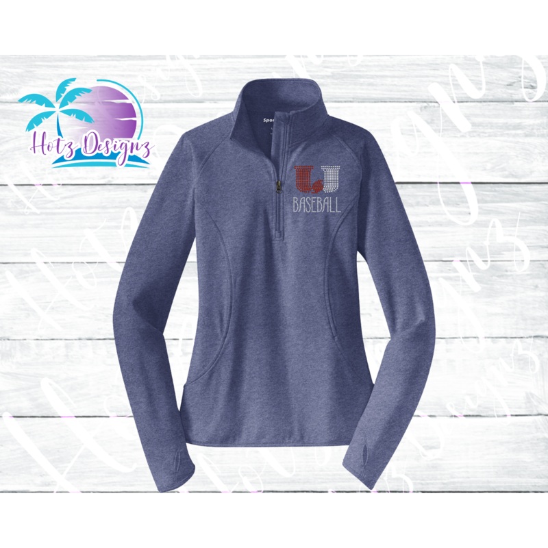 PHU Baseball Rhinestone Stretch 1/2 Zip Pullover