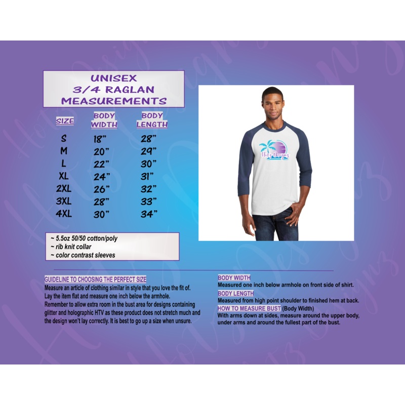 Sizing Guide included.Please read sizing information prior to ordering to assure your perfect fit. Color palettes vary from device to device and your shirt or design may look slightly different than the color shown on your screen.