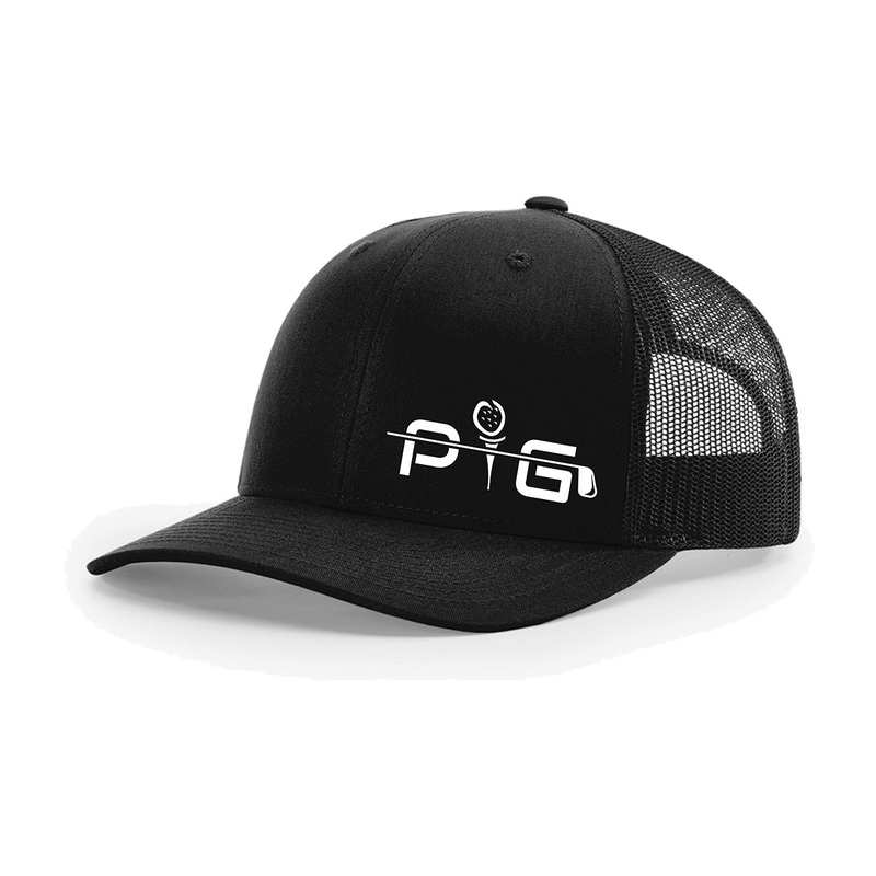 PiG Embroidered Richardson 112 Snapback in charcoal/black, black, and white.